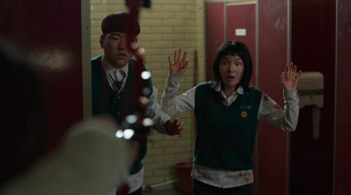 Из взрослых здесь вспомнили полицейского-детектива и Нам Со Джу, пожарного-спасателя, батю Он Чо - они оба крепкие и подготовленные мужики, смелость и даже героизм с их стороны вполне был ожидаем. И никто не вспомнил классную руководительницу ребят - госпожу Пак, их учителя английского. А между тем она обычная женщина, которую жизнь к такому даже близко не готовила. Когда она пыталась объяснить своим подопечным, что вокруг происходит и как им быть, она и сама понятия не имела, а её лицо совершенно ясно выражало страх и ужас. И тем не менее, после того, когда её ученики уличили На Ён в её чудовищном поступке и заставили уйти, госпожа Пак бросилась за ней и ценой своей жизни спасла На Ён... на какое-то время. Как по мне, это один из ярчайших эпизодов сериала, незаслуженно забытый. Особенно на фоне своих коллег-учителей - биолога-фаталиста, труса-завуча и шкурного эгоиста-директора, самоотверженность госпожи Пак даже в случае с убившей одноклассника На Ён очень и очень выглядят сильно.