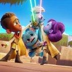 Ну и конечно же в главной роли, максимальной стереотипный черножопо-лапаухий главный герой, сопровождают это как обычно два неведомых урода. Ну и куда без супер-умного мини-дройда.