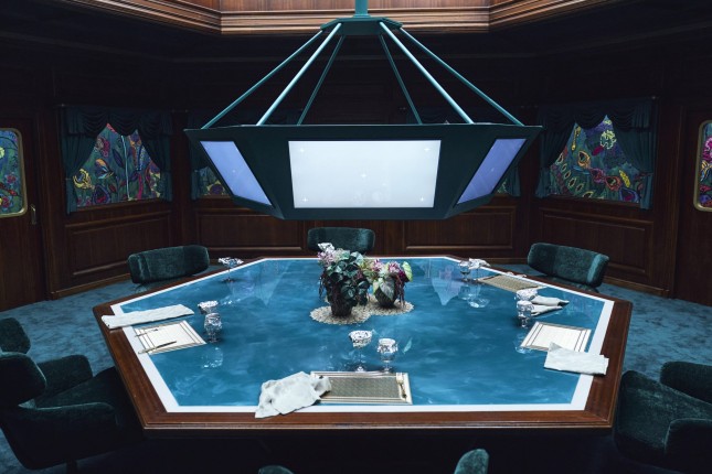 Кроме ролика, в Сети стали доступны фото некоторых интерьеров сериала, в том числе места, откуда распорядитель наблюдает за испытаниями, и VIP-команты. Арт-директор шоу Чхэ Гён-сон объяснила: «В отличие от вспыльчивого Ги Хуна, Ведущий холоден и расчетлив, и эта его черта подчеркнута белым мрамором стен». Что касается места, где VIP-гости отдыхают перед просмотром финала шоу, там все отделано с использованием ярких материалов и экзотических цветов. Символизм тоже легко считывается: привлекательные снаружи, но опасные внутри, скучающие миллиардеры похожи на венерины мухоловки и прочие хищные растения.