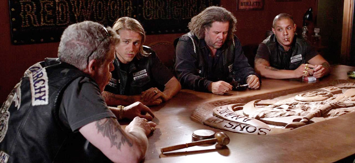 Детский садик)) Пафосная история о хороших байкерах, живущих за счет нелегальной торговли пистиками, которые провозят в одеялах)))))))) Это в Штатах, гда калашников можно купить в интернете и получить по почте в виде конструктора, где почтальон привозит ящик патронов и оставляет на крыльце дома рядом с молоком и свежей газетой...)))